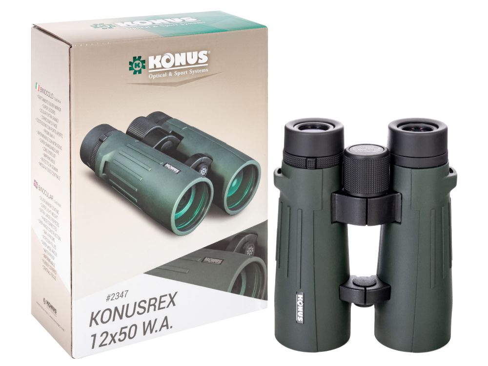 Konus Konusrex 12x50 WA – бинокль с 12-кратным увеличением и широким углом обзора. Он станет прекрасным выбором как для детального рассматривания сильно удаленных объектов, так и для отслеживания перемещений групп объектов. Его возможности можно использовать на охоте, для обеспечения безопасности больших территорий, для орнитологических наблюдений и многого другого. Бинокль имеет всепогодную конструкцию, поэтому не боится дождя, снега и перепадов температуры.