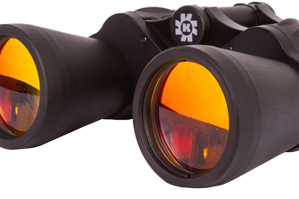 Все оптические элементы сделаны из оптического стекла, а для улучшения контраста линзы защищены несколькими слоями рубинового просветления. Бинокль собран по Porro-схеме, имеет классические 50-миллиметровые объективы, хорошо подходит для наблюдений и при свете дня, и в сумерках. Корпус защищен резиновым покрытием, есть возможность установки прибора на штатив.