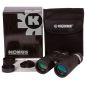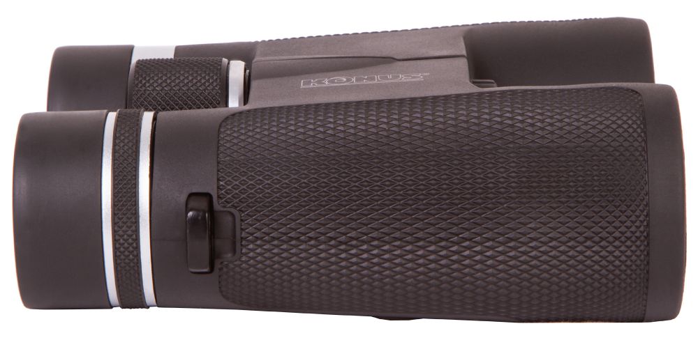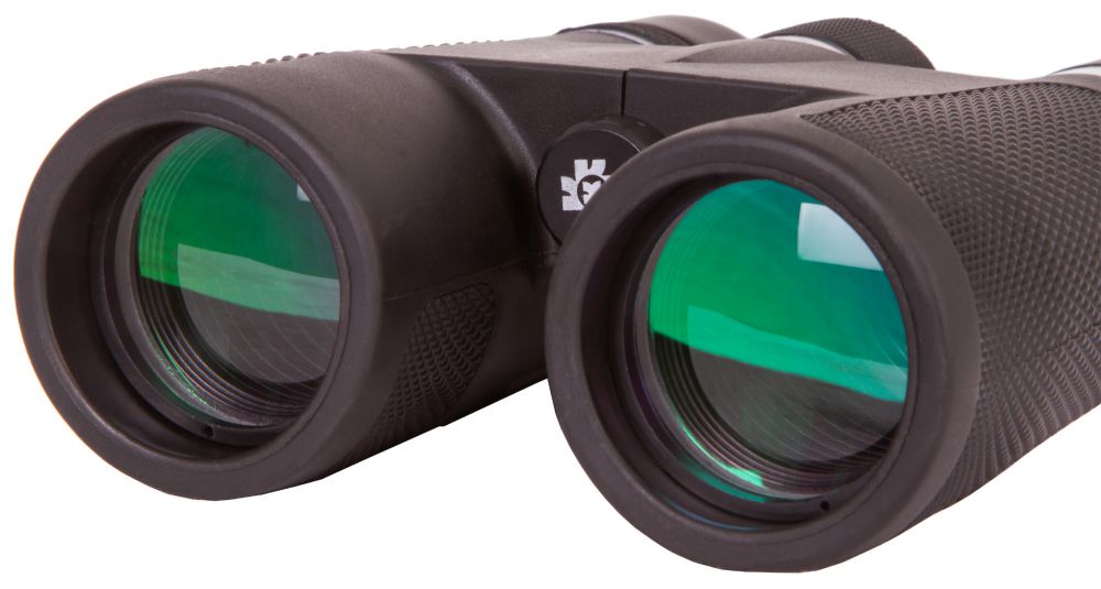 Стеклянная оптика с многослойным просветлением хорошо собирает свет, поэтому эффективна даже при слабой освещенности. Картинка получается четкой, контрастной и насыщенной. Корпус защищен нескользящей резиной, причем боковины имеют не гладкое, а фактурное покрытие. Это делает дизайн более интересным и позволяет увереннее удерживать бинокль в руках.