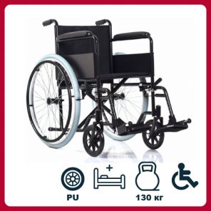 Комментарий: в таком кресле можно чувствовать себя комфортно и безопасно во время передвижения. Сидение в меру мягкое, подлокотники двойные, подножки съемные. Так же это кресло можно аккуратно сложить.