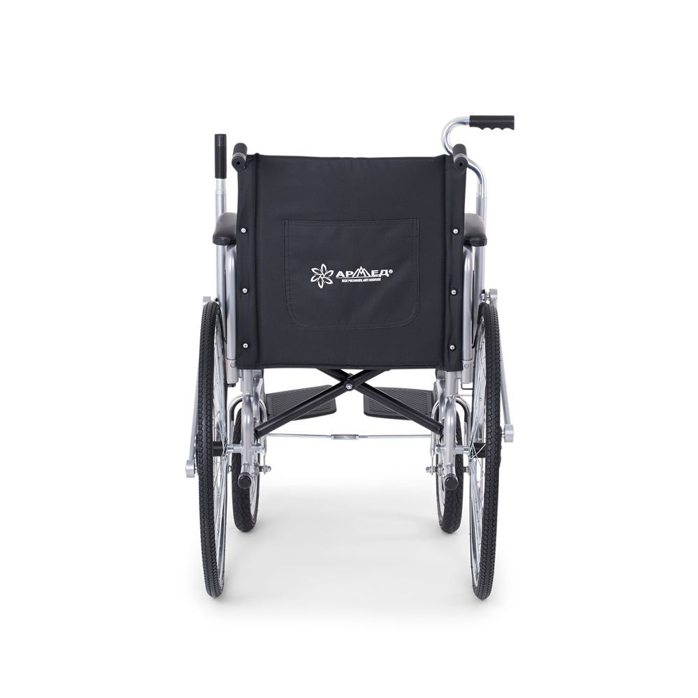 Коляска Armed Н 005 предназначена для передвижения пациентов и людей преклонного возраста с сопровождающим лицом. Ручки для толкания имеют нескользящие резиновые накладки и выемки для пальцев. Каркас коляски изготовлен из стальных тонких трубок, сверху покрыт прочным материалом. Для комфорта между трубками и тканью проложен слой поролона. Управление коляской происходит при помощи рычага. Тормозные фиксаторы расположены по бокам от кресла. Съемные подножки регулируются по высоте. Подлокотники ступенчатые, с мягкими накладками, несъемные.