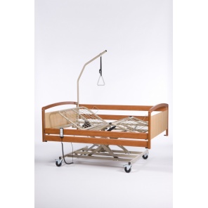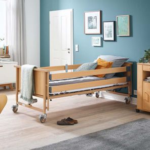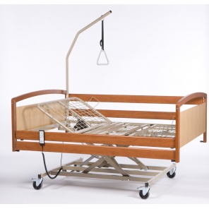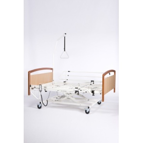 Кровать Burmeier Arminia II относится к типу реабилитационных. Каркас кровати изготовлен из массива бука, который обладает особой прочностью и износостойкостью. Кровать состоит из 4-х секций, ножная и спинная часть которых регулируется дистанционным пультом. Кнопки на пульте блокируются ключом, во избежании случайных нажатий. В изголовье расположена штанга с приспособлением для подтягивания.