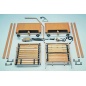 Боковые ограждения могут свободно приподниматься и опускаться при помощи одной руки. Колеса кровати оснащены индивидуальными стояночными тормозами. В комплект входит полиуретановый матрас высокой плотности.