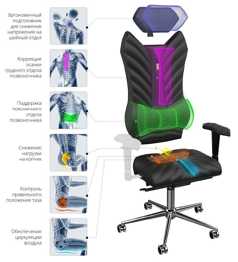 Эргономичное кресло для руководителя Monarch 0204 имеет свой стиль и характер, королевский выбор для людей знающих цену удобству. Спинка ортопедического кресла сконфигурирована для коррекции осанки грудного отдела позвоночника, а также для поддержки поясничного отдела позвоночника. Защищает позвоночник от мышечного напряжения, снижает нагрузку на копчик, расслабляет межпозвоночные диски, тем самым снижая чувство усталости от продолжительного сидения и предупреждая возникновение и развитие заболеваний позвоночника.