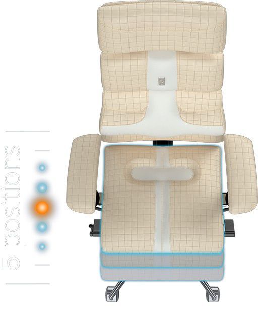 Конфигурация сиденья стула способствует правильному положению таза и обеспечивает циркуляцию воздуха.