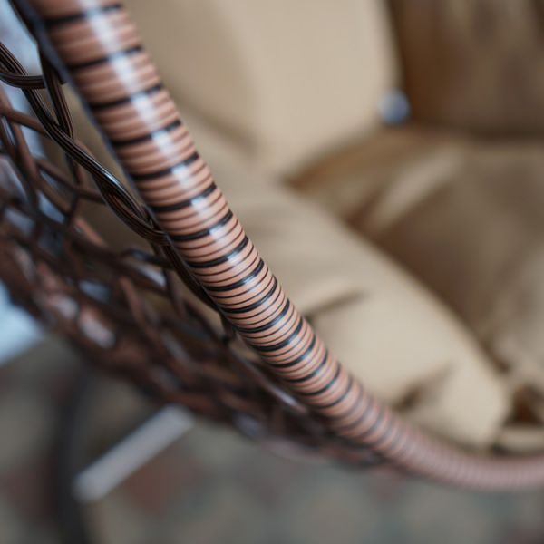 Кресло-качели Kvimol KM 0001 малое на стальной штанге с плетеной корзиной из искусственного ротанга. В корзине удобные подушки из влагостойкой ткани. Очень удобное место для отдыха и чтения - свет проникает даже через стенки корзины.
