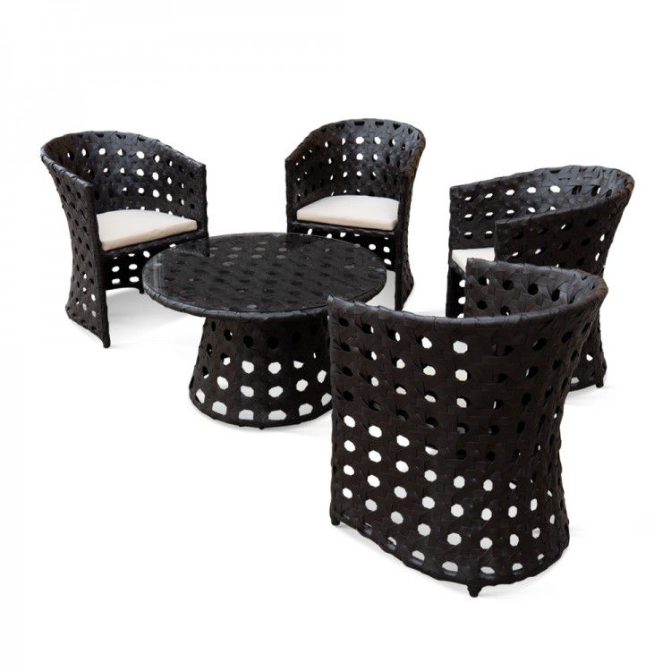 Обеденная группа из искусственного ротанга ручной работы на 4 персоны для загородного дома. В комплект входят стол со стеклянной столешницей и 4 кресла.