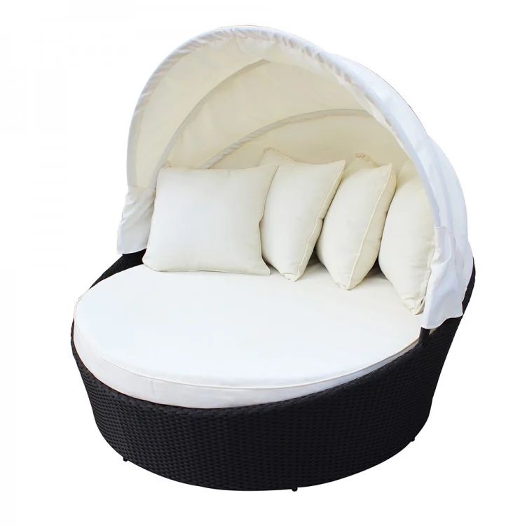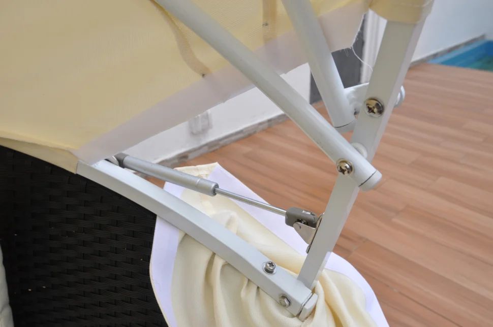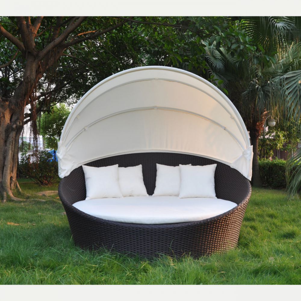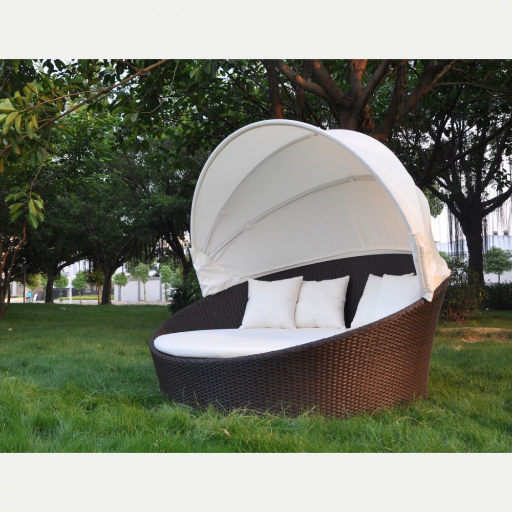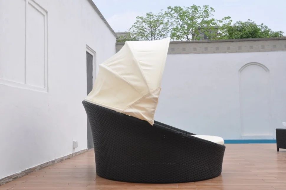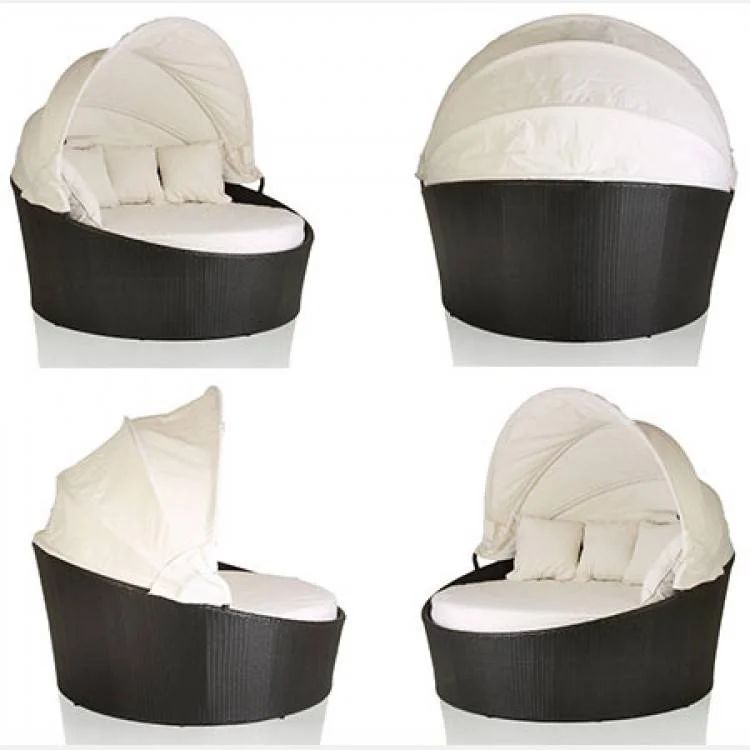 Оригинальный шезлонг-диван Kvimol КМ 0099 для обустройства приусадебного участка. Здесь вы можете почитать книгу в тишине под развесистой кроной деревьев или просто отдохнуть. Уютное местечко создано из плетеного ротанга, имеет крышу из влагостойкой ткани и оборудовано мягкими подушками и матрасом.