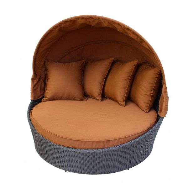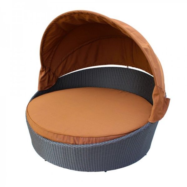 Шезлонг Kvimol КМ 0099 представляет собой оригинальный и великолепный предмет для обустройства приусадебного участка. Здесь вы можете почитать книгу в тишине под развесистой кроной деревьев или просто отдохнуть. Солнце, легкий ветерок и ясное небо - что еще нужно для счастья? Уютное местечко создано из плетеного ротанга, имеет крышу из влагостойкой ткани и оборудовано мягкими подушками и матрасом.