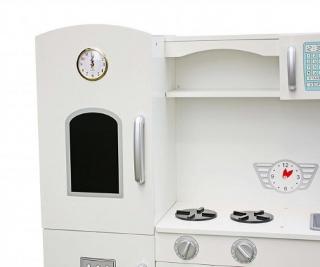 Деревянная кухня «Александрия» позволит маленькой хозяюшке приготовить самые вкусные блюда для своих кукол и плюшевых питомцев. На кухне есть все необходимое — холодильник, микроволновая печь, плита, раковина. Полочки и шкафчики позволят аккуратно хранить все игровые предметы. Все двери на кухне открываются.