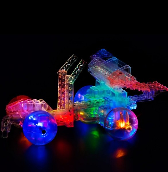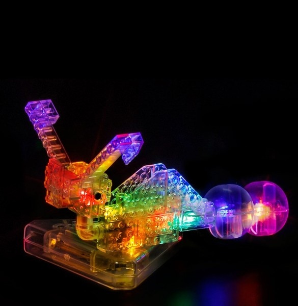 Светящиеся элементы, которые входят в комплект конструктора, смогут придать собранным фигурам потрясающий вид. Для этого необходимо только установить их на специальную проводную основу - адаптер.