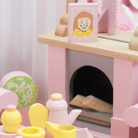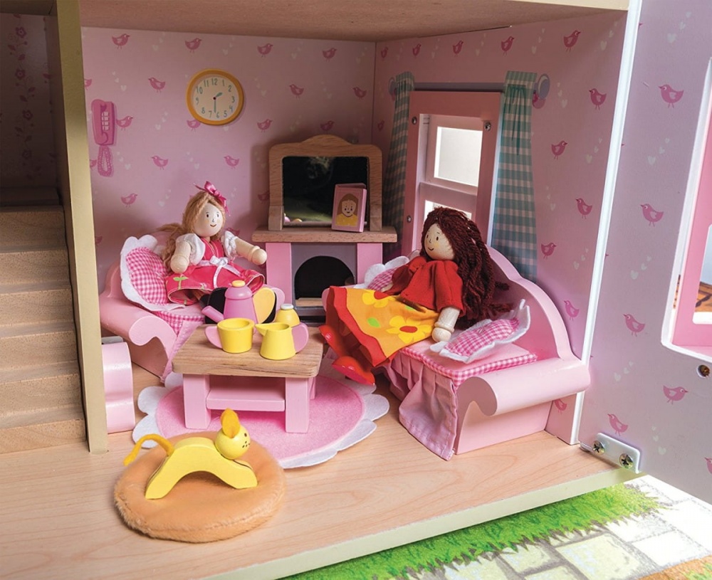 Набор мебели в розовых оттенках приведет в восторг каждую девочку, ведь играть теперь станет гораздо интереснее. Можно будет обустроить прекрасную гостиную для любимых кукол. В набор входят разнообразные предметы, такие как кресло, красивые подушки, несколько видов столиков, камин и набор посуды. Изделия выполнены из самого безопасного и нетоксичного материала - дерева, выглядят очень аккуратно и симпатично. Все предметы очень похожи на настоящие. Игровой набор произведен в Англии и имеет все необходимые сертификаты качества.