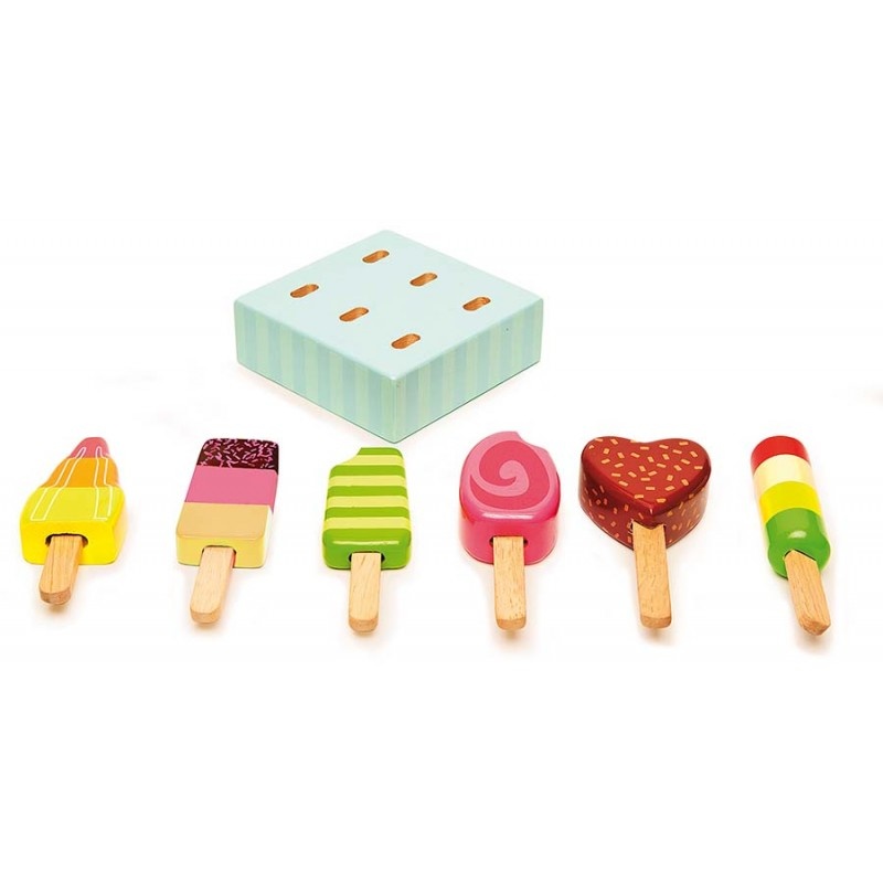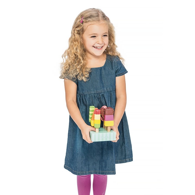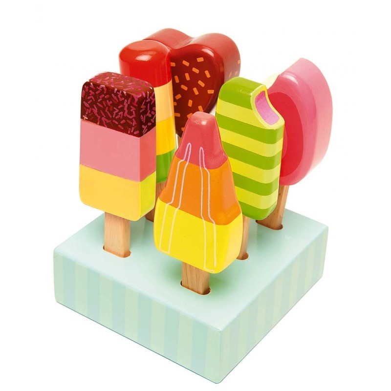Маленькие поварята с удовольствием смогут угостить своих гостей фруктовым мороженным, которое они «приготовят» на игровой кухне. Ассортимент аппетитного мороженного на палочке, на красочной подставке-держателе можно использовать в качестве товара, играя в магазин или кафе, где посетители будут рады им полакомиться.