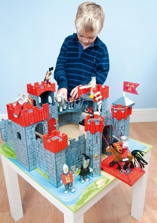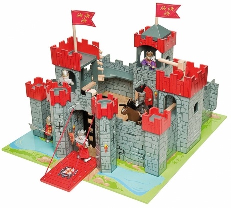 Такой набор из натурального дерева понравится любому мальчишке. Ведь в него есть возможность создать копию замка «Львиное Сердце», который он сможет не только обустроить, но и защищать от вражеского натиска.