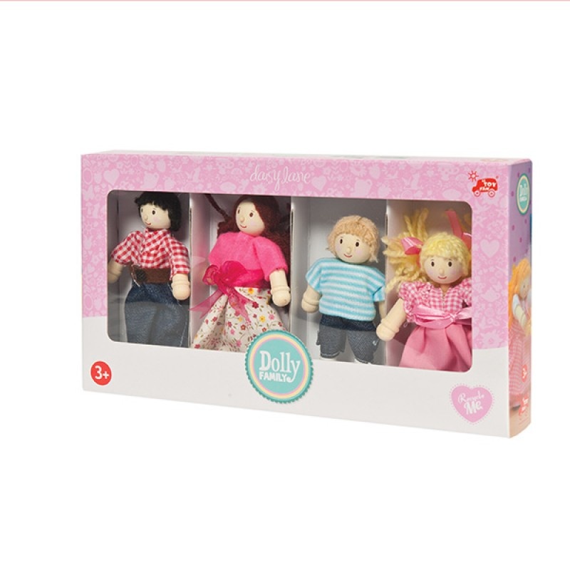 Веселая кукольная семья состоит из 4-х деревянных фигурок - родителей и двоих деток. Этот замечательный набор кукол в подарочной упаковке станет приятным сюрпризом для маленькой девочки, которая с удовольствием будет разыгрывать с ними сценки из семейной жизни, хлопотать по дому, заниматься с детьми. Набор выполнен из качественных натуральных материалов, куклы одеты в яркие модные наряды, которые можно снимать.
