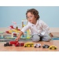 Яркие автомобили перенесут своего юного обладателя на нью-йоркские дороги - тут и знаменитая американская фура-капотник, и желтый школьный автобус, и грузовик пожарной команды, и прочие классические авто США, назначение которых ребенок сам без труда определит.