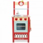 Классическая деревянная кухонная плита с двумя горелками и съемной пластиковой раковиной. Ручки регулировки горелок и стрелки на кухонных часах вращаются, что дает возможность обучать ребенка. Большой духовой шкаф с дополнительной полкой позволяет хранить дополнительную посуду. Гарнитур дополнен держателем для полотенца, входящим в комплект.