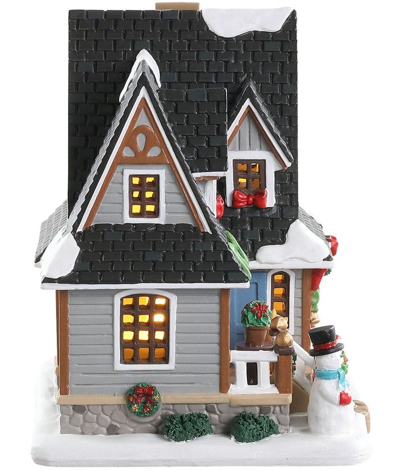Заснеженный домик украшен гирляндами и яркими фигурками. Тёплый свет, идущий из камина, подарит дому уют и тепло. Этот праздничный домик из деревни Лемакс Каддингтон, которая представляет собой идеальную коллекцию в викторианском стиле. Этот очаровательный домик станет прекрасным элементом новогоднего декора, приятным подарком и сказочным ночником, погружающим взрослых и детей в волшебные сны.