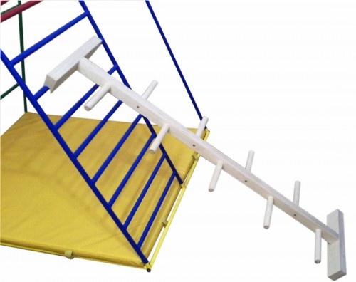 Ступеньки лестницы расположены в шахматном порядке, что позволяет ребенку, весело играя, забираться по ним. Такое расположение ступенек поможет ребенку развить координацию, а перекрестное направление движения благотворно влияет на развитие обоих полушарий мозга, что немаловажно в раннем возрасте.