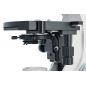 У предметного столика есть препаратоводитель, рядом со столиком находятся ручки грубой и точной фокусировки, под столиком расположено место для установки конденсора. Микроскоп комплектуется двумя конденсорами светлопольным Аббе с ирисовой диафрагмой (для сухих и масляных наблюдений) и сухим темнопольным конденсором. Подсветка расположена внизу, источник освещения – мощный светодиод, яркость которого можно регулировать. Есть коллектор.