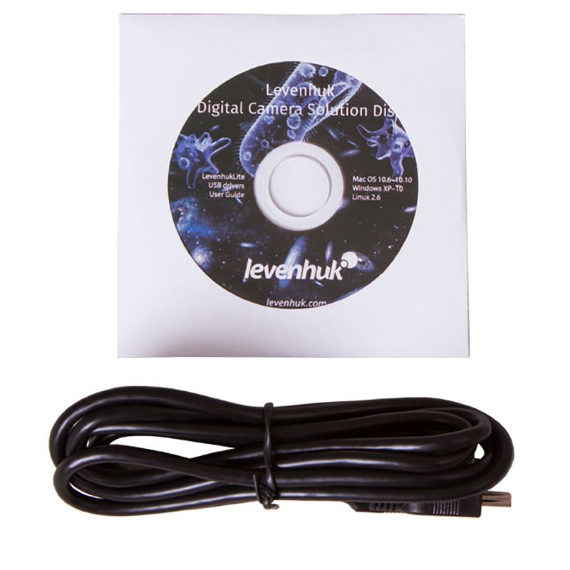 Камера имеет матрицу 3,1 Мпикс и передает изображения с разрешением до 2048х1536 пикселей. Подключение к компьютеру осуществляется с помощью кабеля USB 2.0 (идет в комплекте) и специальной программы Levenhuk. Эта же программа позволяет настраивать яркость, контрастность, кадрировать фото. Программное обеспечение совместимо с Windows, Mac OS X и Linux.