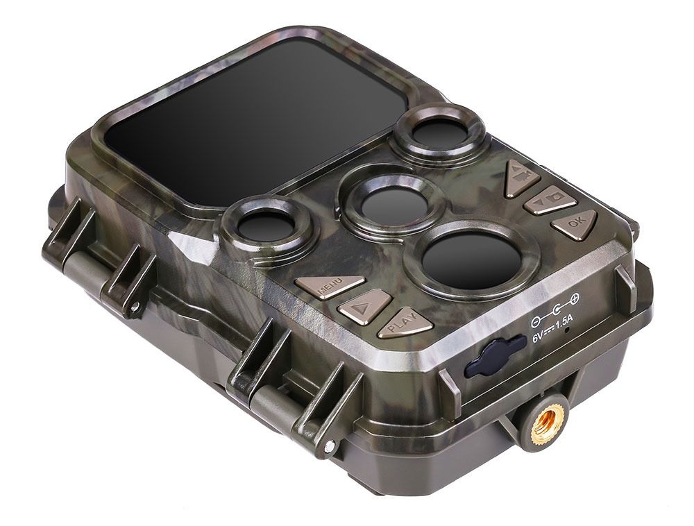 Камера-ловушка работает от 4 батареек типа АА или внешнего источника питания. Она стабильно работает в температурном диапазоне от −20 до +50 °С и защищена от мелких брызг воды. При помощи комплектных креплений и штатива она фиксируется на дереве или стене.