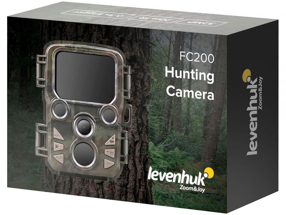 Фотоловушка Levenhuk FC200 – компактный оптический прибор для автоматической фото- и видеосъемки, который пригодится охотнику, сотруднику национального парка или владельцу приусадебного участка. Эта модель оснащена инфракрасной подсветкой для ночной съемки в монохромном режиме. ИК-диапазон (850 нм) почти не воспринимается зрением человека и большинства животных, поэтому наличие подсветки никак не повлияет на оценку перспективности охотничьего участка или отслеживание перемещений лесных обитателей.