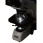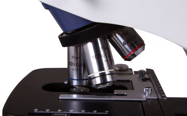Levenhuk MED D35T – это тринокулярный микроскоп с 10-мегапиксельной камерой в комплекте. Классические визуальные наблюдения, фотографирование образцов, видеозапись исследований, вывод картинки на экран монитора – с этими цифровыми лабораторными микроскопами все это доступно. Планахроматическая оптика позволяет наблюдать картинку без искажений, исследования можно вести на увеличении от 40 до 1000 крат, есть масляная иммерсия и настройка освещения по Келеру. Микроскоп станет настоящей находкой для профессионала, работающего в микробиологической лаборатории, научно-исследовательском институте или медицинском центре. Микроскопы Levenhuk серии MED 35 снабжены оптической системой, скорректированной на бесконечность, которая применяется в микроскопах профессионального и высокого класса. Эта система включает объективы класса Infinity PlanAchromat и позволяет получать чистые, высококонтрастные изображения с высокой степенью плоскостности. Одна из самых важных особенностей бесконечной оптической системы заключается в том, что она позволяет устанавливать в оптический путь микроскопа между объективами и окулярным тубусом любые дополнительные компоненты. К ним можно отнести поляризаторы и эпи-флуоресцентные осветители. В итоге модульный принцип конструкции и простота в эксплуатации делают Levenhuk MED 35 оптимальными микроскопами для использования разных видов микроскопии и работы в гематологических, гистологических, микробиологических и других лабораториях. Поворотная на 360° насадка – это удобство при групповых исследованиях. Ее бинокулярная визуальная часть отклонена на небольшой 30-градусный узел, а окулярная трубка для цифровой камеры расположена вертикально. Камера устанавливается надежно, не шатается, поэтому изображение на внешнем экране получается четким. У насадки есть делитель светового потока. Оптическая система состоит из широкопольных окуляров, дающих 10-кратное увеличение, и пяти планахроматических объективов разной кратности. Масляная иммерсия используется со 100-кратным объективом. Пружинящие оправы объективов с увеличением 40х, 60х и 100х защищают оптику от случайных повреждений. Оптика всех аксессуаров сделана из стекла с антигрибковым покрытием. Передаваемая оптической системой картинка радует высокой детализацией, контрастностью и правильной цветопередачей. 10-мегапиксельная камера позволяет использовать для исследования микромира самые современные технологии. Она работает в паре с компьютером, к которому подключается при помощи комплектного USB-кабеля. Картинка выводится на внешний экран в режиме реального времени, поэтому нет необходимости постоянно смотреть в окуляры микроскопа – это делает работу в лаборатории более легкой и удобной, так как снижается нагрузка на зрение и мышцы шеи. Для фото- и видеосъемки используется специальная программа. С ее помощью можно корректировать размер, яркость и контрастность изображения, менять время выдержки, проводить калибровку камеры с объективами, измерять образцы или отдельные структуры (доступно несколько единиц измерения). Для точного размещения микропрепаратов на предметном столике используется препаратоводитель. Сам столик можно перемещать по двум направлениям. Под столиком находится конденсор с ирисовой диафрагмой, рядом расположены ручки грубой и точной фокус