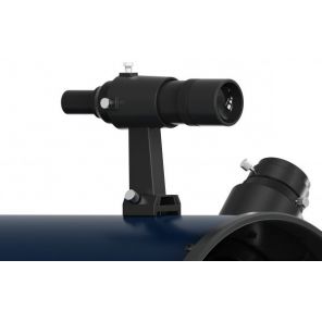 Управление телескопом интуитивно понятно, его быстро освоит даже начинающий астроном. ОТА установлена на устойчивую и простую в использовании монтировку Добсона, изготовленную из качественно обработанного дерева. Для точной настройки резкости видимого изображения служит 2-скоростной реечный фокусер 2" с адаптером на посадочный диаметр 1,25". Максимальное полезное увеличение системы достигает 500 крат. В комплект поставки входят окуляры Plössl 10 и 25 мм (1,25"), которые обеспечивают увеличение 127х и 51х соответственно. Помимо них, набор включает и другие полезные аксессуары: оптический искатель 8х40 для удобного наведения на объекты, вентилятор для активного охлаждения главного зеркала (работает от 8 батареек типа АА, приобретаются отдельно) и защитный чехол для оптической трубы.