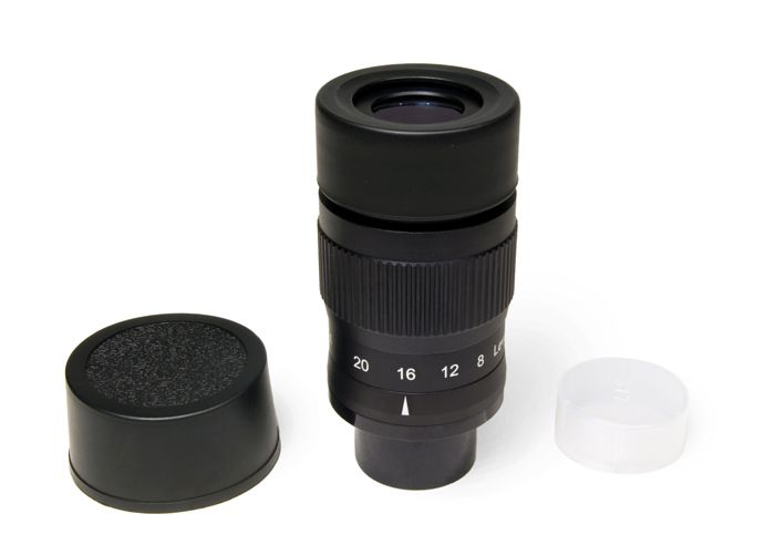 Окуляр Levenhuk Ra Zoom 8–24 мм интересен тем, что его фокусное расстояние можно изменять в диапазоне от 8 до 24 мм. Таким образом, он способен заменить собой сразу несколько окуляров. Его одинаково эффективно можно использовать и для поиска объектов на ночном небе, и для прицельного изучения Луны и планет Солнечной системы.