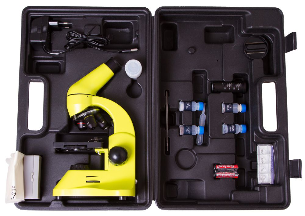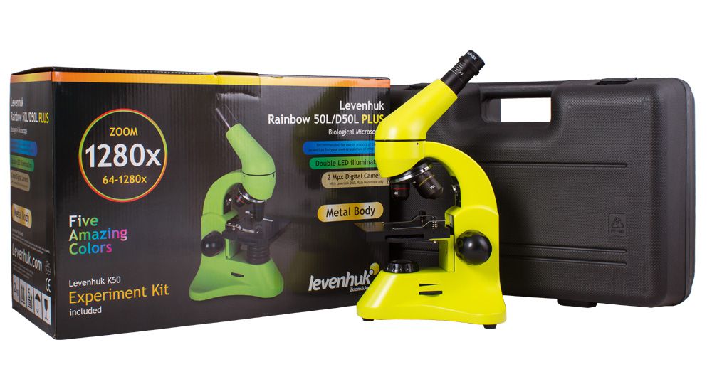 Современный дизайн, превосходная оптика, совершенная конструкция – все это микроскопы Levenhuk Rainbow 50L PLUS Lime/Лайм! Микроскопы прекрасно подходят для начинающих исследователей. Каждая модель комплектуется набором для опытов Levenhuk K50, в котором есть все необходимое для знакомства с тайнами микромира.