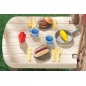 В состав набора входит стол, два стульчика, звонок со звуком, двадцать аксессуаров.