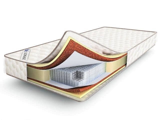 Умеренная жесткость модели обеспечена за счет сочетания в наполнении натуральных материалов - латексированной кокосовой койры и натурального латекса. Кокосовая койра выравнивает поверхность матраса, делает ее гладкой.