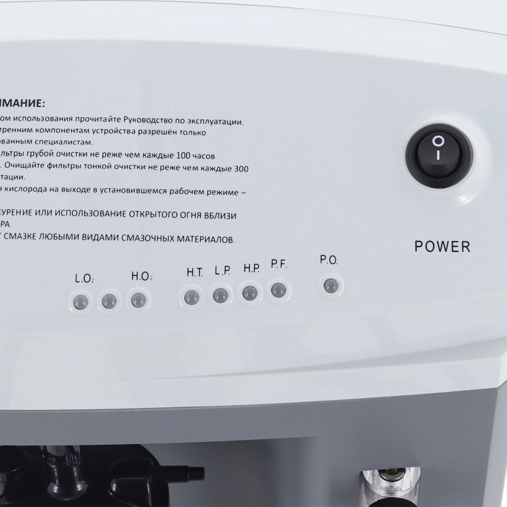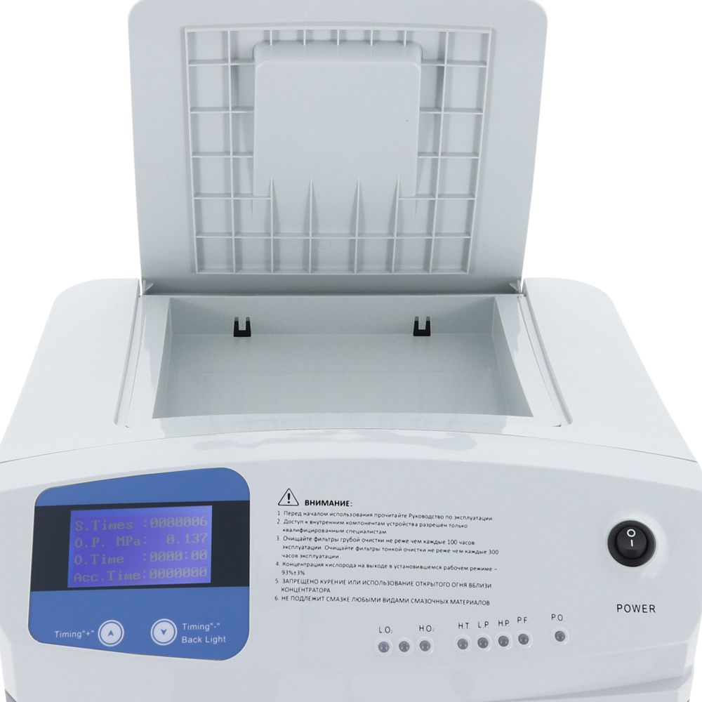 Прибор прост и удобен в эксплуатации, имеет интуитивно понятную систему управления. Информация о параметрах работы концентратора отображается на ЖК-экране (количество включений, давление, таймер, суммарное время работы). Оборудование снабжено надёжной системой контроля – при возникновении сбоев включаются тревожные сигналы.