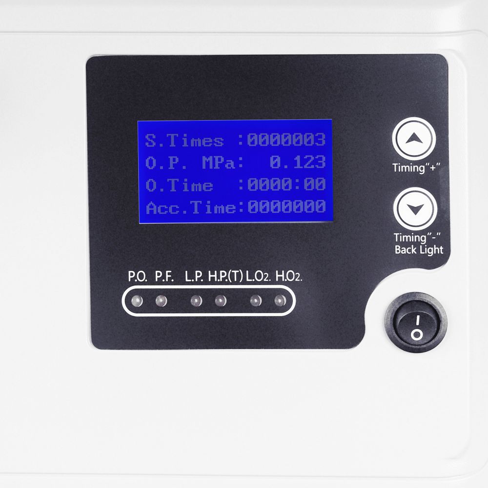 Прибор оснащён газоанализатором, контролирующим содержание кислорода в составе кислородно-воздушной смеси на выходе из концентратора. Когда концентрация кислорода достигает 82%, загорается голубой индикатор.