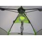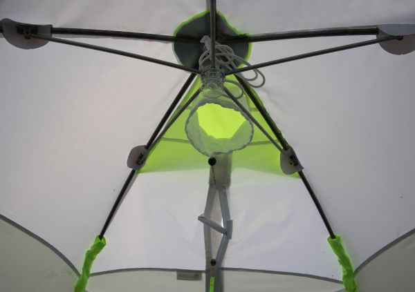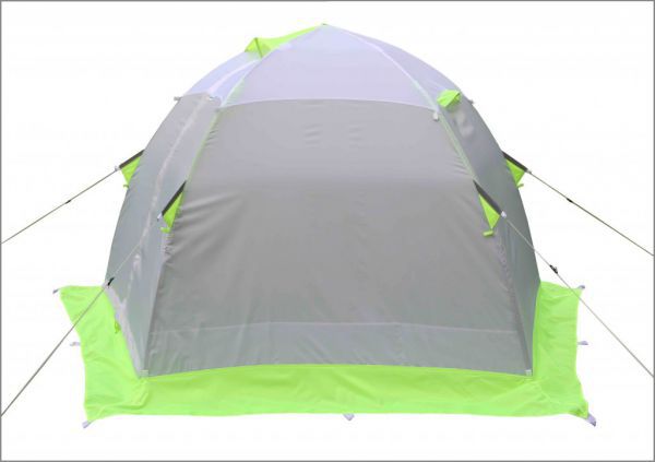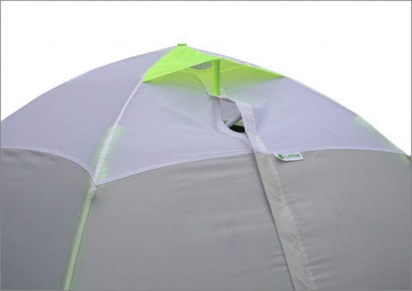 Легкая автоматическая палатка для зимней рыбалки позволяет разместиться одному-двум рыбакам со снаряжением. Зимняя палатка ЛОТОС 2 пользуется большой популярностью у любителей и профессионалов подледного лова благодаря ее уникальной мобильности и высокой надежности. Компактный сверток размером 70 х 20 см и весом 4,3 кг раскрывается в умелых руках за считанные секунды, превращаясь в цельный и прочный купол. Жесткая пятигранная конструкция каркаса при небольшой высоте палатки обеспечивает данной модели высокую ветроустойчивость. Возможность комплектации внутренним тентом, утепленным полом и прочими опциями (приобретаются отдельно) позволяет значительно повысить комфортность укрытия. Палатка разработана для сурового зимнего климата и рассчитана на использование при температурах до - 60 градусов мороза. В конструкции каркаса палатки применен эксклюзивный запатентованный механизм зонтичного типа, который обеспечивает ее раскрытие практически в одно движение. По нижнему периметру палатка «ЛОТОС 2» снабжена широкими цельными защитными юбками - внутренней (15 см) и внешней (25 см), при этом внешняя юбка имеет десять усиленных креплений для ввертышей. Полноценная двойная юбка обеспечивает палатке повышенную защиту от ветра. Для хорошей циркуляции воздуха в верхней части купола предусмотрен широкий вентиляционный клапан на утяжке. С внешней стороны клапан защищен от попадания осадков регулируемым козырьком. Изнутри палатка снабжена карманами для вещей и удильников, а также навесной полкой под потолком. Широкая двухстворчатая Т-образная дверь палатки оснащена тремя замками №10, позволяющими открывать каждую створку по отдельности, а также раскрывать дверь во всю стенку палатки, образуя проход шириной 1,4 метра. Широкий вход позволяет заносить внутрь крупногабаритные вещи и является несомненным преимуществом палаток зонтичного типа. Высококачественная молния дверного замка снабжена защитными планками с твердыми вставками из ПВХ, гарантирующими надежную защиту молнии от осадков и исключающие закусывание молнии при закрытии.