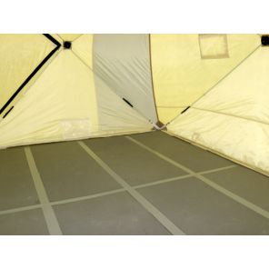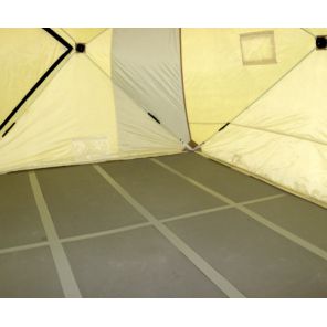 Жесткая пятигранная конструкция каркаса при небольшой высоте палатки обеспечивает данной модели высокую ветроустойчивость. Возможность комплектации внутренним тентом, утепленным полом и прочими опциями (приобретаются отдельно) позволяет значительно повысить комфортность укрытия. Палатка разработана для сурового зимнего климата и рассчитана на использование при температурах до - 60 градусов мороза.