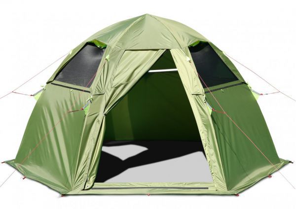 Тент палатки пошит из прочной ткани Polyester Oxford 210D с влагостойкостью не менее 5 000 мм вод. столба. Швы тента проварены изнутри герметизирующей лентой. Молнии оконных и дверных проемов оснащены внешними защитными планками. Нижняя часть палатки оснащена внешней юбкой, которая обеспечивает защиту от задувания и позволяет, при необходимости, окопать палатку по периметру. Влагостойкий пол изготовлен из прочной водостойкой ткани Оксфорд 300Д (плотность 140 г/м2). По углам пола закреплены усиленные петли из стропы с клевантами для его фиксации к палатке или к грунту.