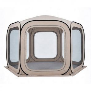 Тамбур КубоЗонт 6 предназначен для создания прихожей - защищенного от дождя, снега и ветра помещения перед входом в палатку, а также для формирования быстро фиксируемого входа с распашной дверью. Тамбур используется на модульных палатках серии «КубоЗонт 6», оборудованных унифицированным D-образным входом.
