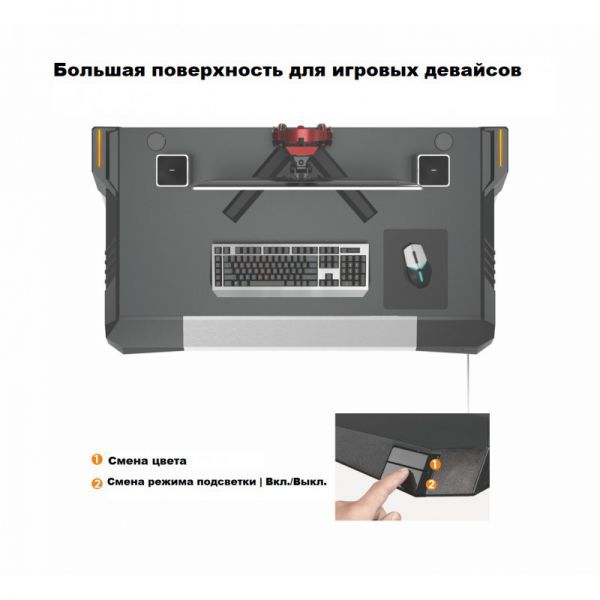Со столом для геймеров LUMI вы поднимите свою игру на новый уровень! Алюминиевый игровой стол GMD01-1 обеспечит профессиональным игрокам идеальные условия для игры с повышенным комфортом и удобством. Подключите USB-кабель и наслаждайтесь различными RGB-режимами световой подстветки.