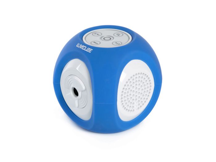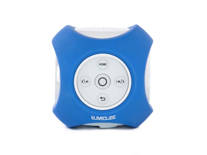 Lumicube MK1 — это портативный проектор, который удобно брать в путешествие и использовать дома. Устройство представляет куб со сторонами 9 см. MK1 Blue имеет большую диагональ проецирования, возможность загрузки собственных файлов и воспроизведения с внешних носителей. Корпус устройства выполнен из пластика с яркими деталями. На одной из сторон располагаются кнопки управления (включение, выключение, возможность перемотки, переключения, возврат). Благодаря небольшим размерам, вы сможете взять его в любое путешествие, а чехол сохранит гаджет в безопасности и предотвратит от повреждений.