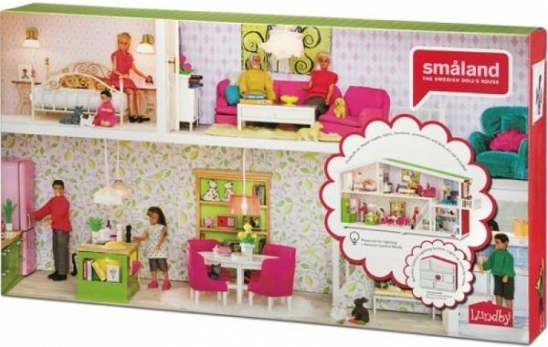Смоланд - кукольный домик, который станет не только игровой локацией для ребенка, но и роскошной деталью интерьера детской или гостиной. Домик выполнен с проводкой под освещение всех помещений.