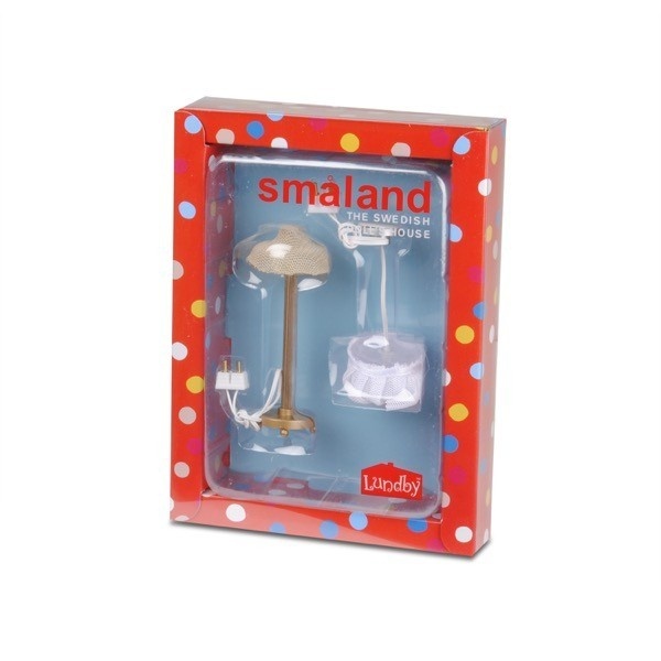 Освещение для домика LUNDBY Торшер и лампа с абажуром. Торшер на оригинальной ножке бронзового цвета. Ажурный абажур бежевого цвета. Для подключения освещения необходимо установить светильники на штатные места. Светильники выполнены в масштабе 1:18. Премиум упаковка с прозрачным окошком.