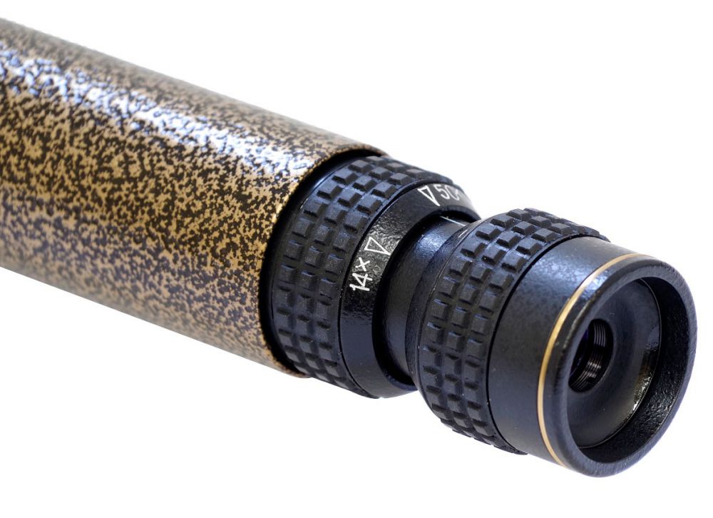 Корпус зрительной трубы выполнен из прочного металла и покрыт защитной эмалью, которая препятствует выскальзыванию прибора из рук. Для того, чтобы картинка не дрожала на больших увеличениях, прибор необходимо установить на штатив, для которого в конструкции есть два крепления - 1/4" и 3/8". В комплект поставки включен чехол для бережного хранения и транспортировки трубы.