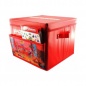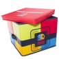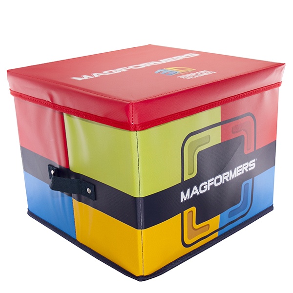 Вместительная коробка для хранения деталей конструкторов выполнена из ПВХ. В ней есть два больших отделения для того, чтобы разложить все необходимые детали по порядку, а также присутствует удобный кармашек для инструкции и тематических карт. Коробка закрывается специальной крышкой с символикой производителя.