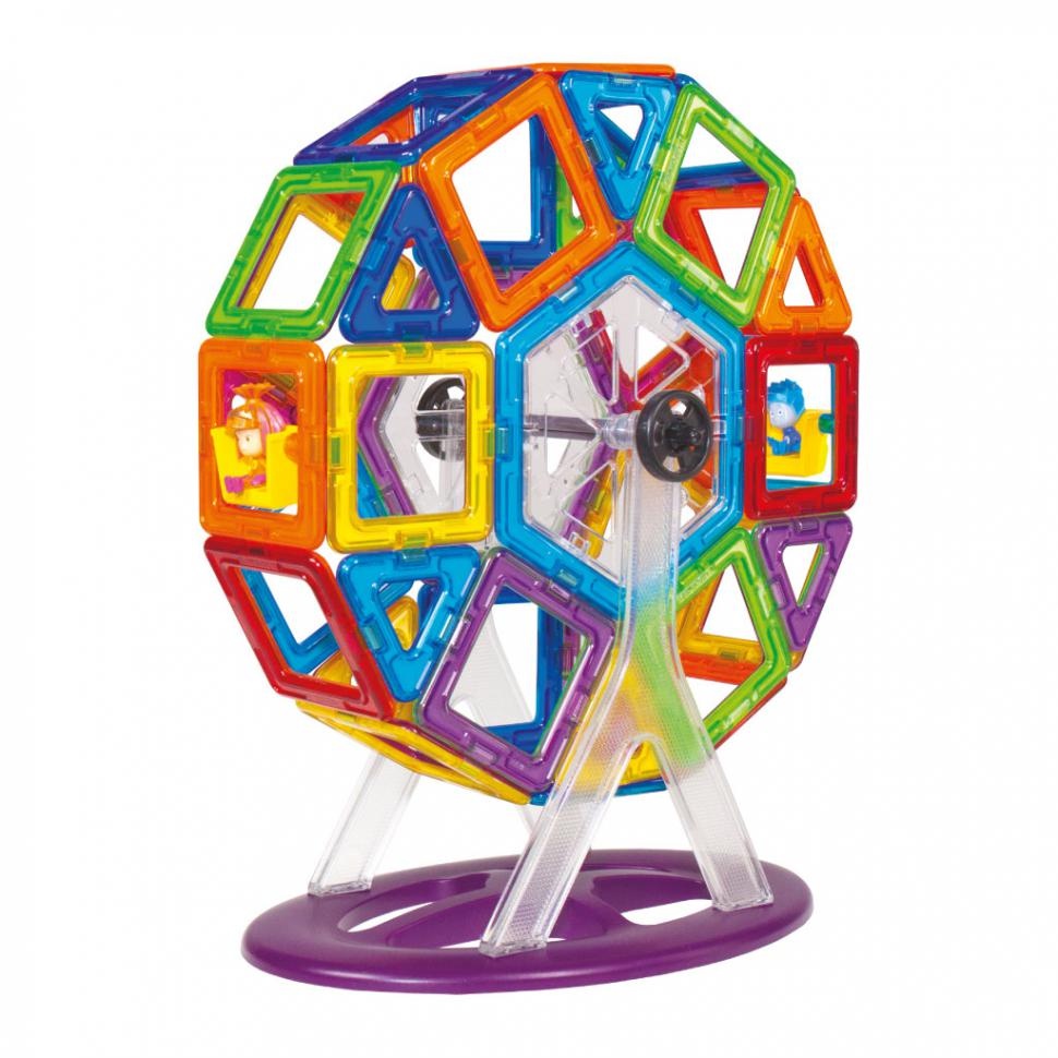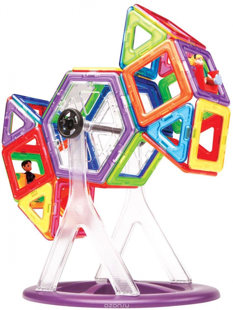 Увлекательный и развивающий магнитный конструктор способен увлечь ребенка в мир создания трехмерных фигур и конструкций, это несомненно увлечет Вашего ребенка. Наличие в этом конструкторе квадратиков со встроенными закрепленными фигурками мальчика и девочки и подставка для сооружения каруселей дает игре элемент интерактивности, познание сбалансированности, а сильные магнитики в панельках делают конструкции очень крепкими.