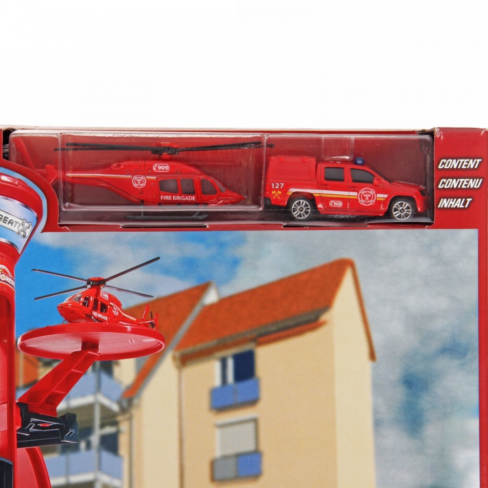 Кроме того, в комплекте присутствуют пожарные автомобиль и вертолет. Над воротами гаража находится специальная кнопка, при помощи которой машина незамедлительно выезжает на вызов. Станция модульная, а, значит, ее элементы можно совмещать по-разному, меняя внешний облик сооружения.