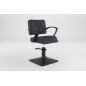 Парикмахерское кресло Bandito Black Edition выполнено в брутальном стиле с использованием тематики ретро и автомобильного дизайна середины XX века. Основание и подлокотники выкрашены в глубокий черный цвет с применением технологии порошковой окраски. Она придает металлу благородный матовый оттенок и обеспечивает дополнительную защиту от коррозии.