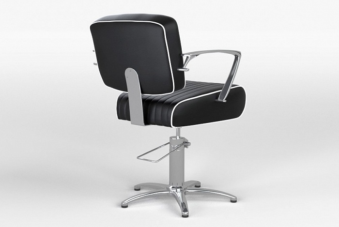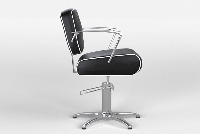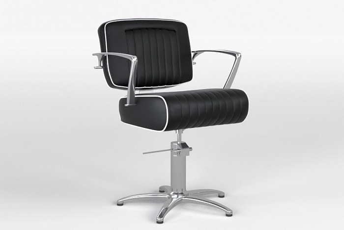Парикмахерское кресло Fiato 72 декорировано в стиле автокресел 70-х годов, имеет характерную форму и отделку в виде контрастной строчки по контуру сиденья. Кресло оснащено пятиопорным основанием и гидравлическим подъемным механизмом.