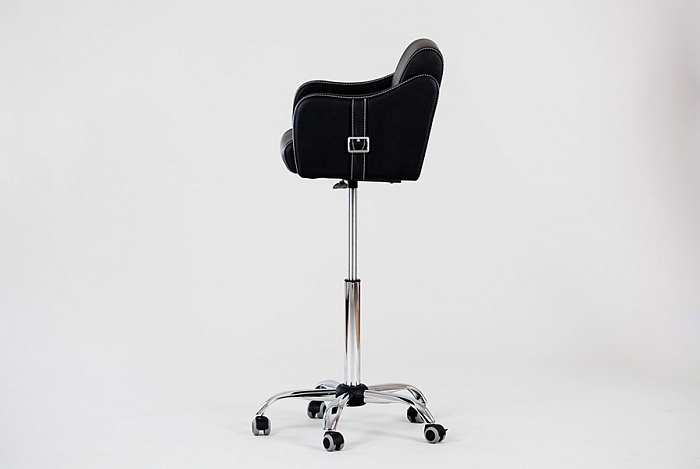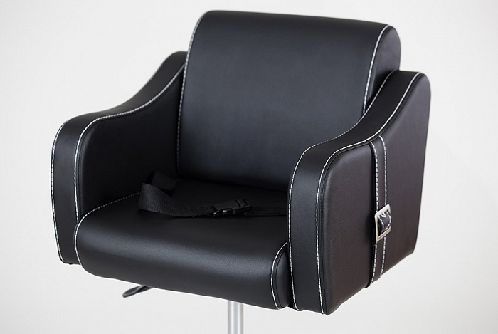 Детское кресло Sorento mini оснащено ремнями безопасности для надежной фиксации ребенка на время стрижки, и гидравлическим подъемником. Основание из хромированного металла выполнено в виде пятилучья на колесах. Колеса оснащены стопором.